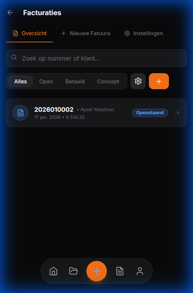 Een volwaardig facturatiesysteem in uw broekzak. Van offerte naar factuur in seconden.